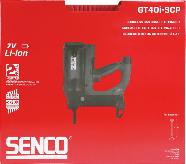 Pneumatický upevňovací systém GT40i-SCP si poradí s najnáročnejšími aplikáciami do betónu a ocele. Je to jednoduchšie, bezpečnejšie a 5-krát rýchlejšie ako náradie na nastreľovacie kotviace prvky. Model GT40i-SCP, na ktorý sa vzťahuje dvojročná záruka, má výkon a odolnosť, ktoré očakávate od výrobku SENCO.
